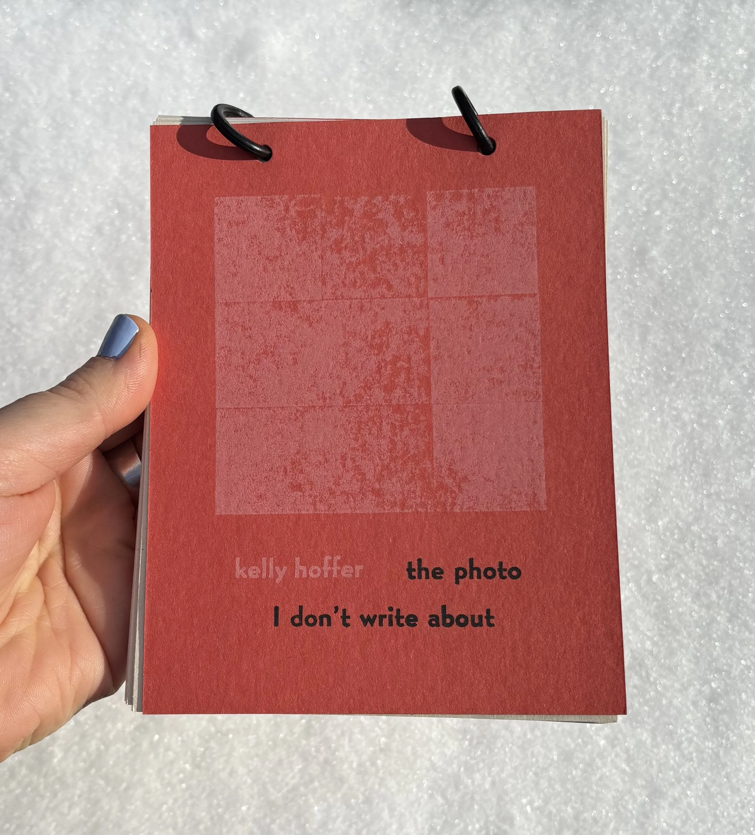 With a handset, letterpress-printed cover; and two-ring, photo album-like binding, this sequence of poems measures in at 4.25” x 5.5”. Printed in an edition of 125.